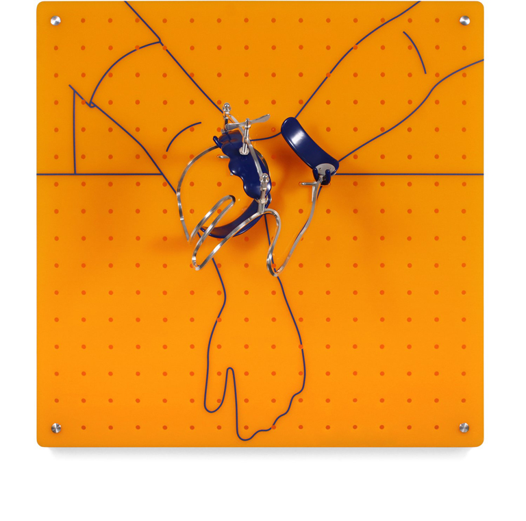 “A hand on the shoulder to offer comfort, an elegant gesture reminiscent of old masterwork paintings, body language that reveals pent-up frustration or anxiety—Collective Gestures addresses the ways we communicate with each other visually, through body language. Studies show the majority of our more honest communication is non-verbal. With so much of our dialogue today being through digital means, face-to-face connections are diminishing and our more authentic feelings are being overlooked. My pieces point out various gestures or postures and their associated meanings, in the hope viewers will realize the importance of how our bodies speak for us. Although my work may have a machined look, every part, down to the screws and rivets, are made entirely by hand. Each is a one-of-a-kind piece that is carefully designed, hand fabricated and formed, soldered and/or cold connected, using traditional jewelry and metalsmithing techniques. An old proverb rightfully claims, “actions speak louder than words.” Through this exhibition, I invite the viewer to ponder the reasons and implications of our seemingly casual gestures.” -Jennifer Crupi