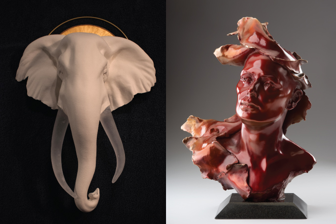 Image: Apparition by Diane Collins (left), Fire Within by Maris Battista (right)
