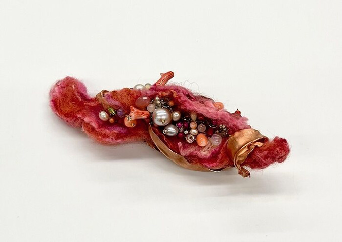 The objects we adorn our bodies with are central to signaling identity, status, and even social belonging. Artists have always played a vital role in defining, challenging, and redefining trends in fashion- intimately influencing the very fabric of these concepts of identity. Artists featured in Garbled Guise explore various themes including gender, race, and class through wearable art. Some works explore the fantastical transformation of identity through costuming while others are honed examples of traditional craftsmanship. Viewers are invited to consider their biases and preconceptions that are often unconsciously tied to external signifiers like clothing.