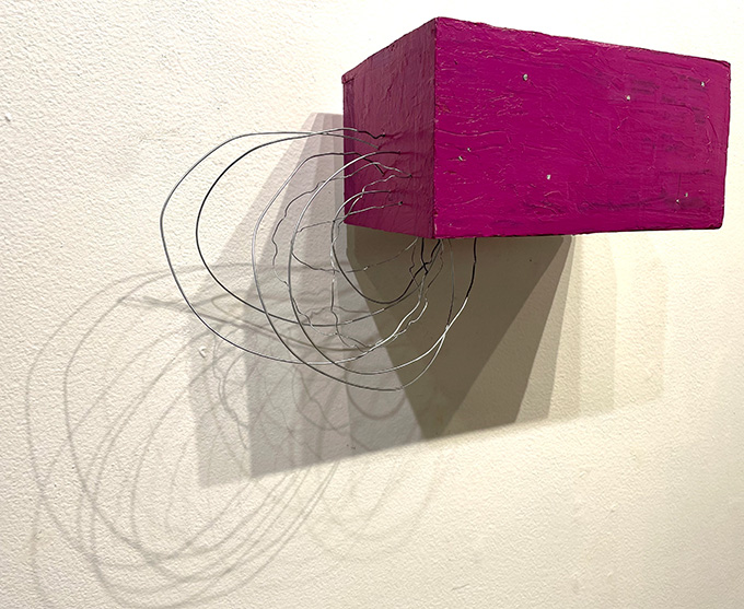 I continue to challenge myself by using primarily repurposed materials to make my sculptural work. This commitment fosters a thoughtful use of resources in my studio practice. Working abstractly allows me to enjoy the visual and logistical problem-solving, while losing myself in the process. Occasionally, I find myself at the same time.