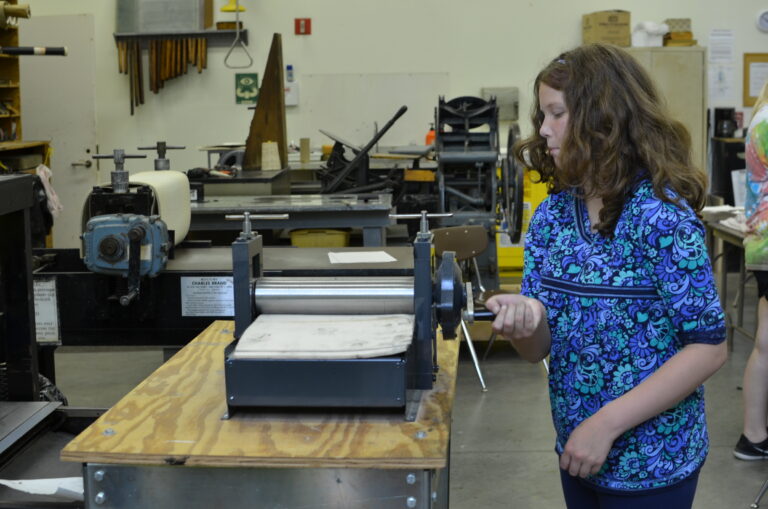 Our print shop has a variety of presses to make your printing dreams come to life. Jump into lithography, etching, screenprinting, wood block, and letterpress; even book arts and papermaking! Our printmaking community includes beginners, seasoned printers, and talented instructors. Join our print shop to make multiple prints from a single plate, block, or screen as you explore the many inks and tools included in your class registration!